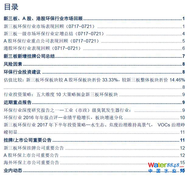 【中信新三板】新三板環(huán)保行業(yè)周報(bào)(2017年第二十九周)— 清大國華中標(biāo)2.4億元污水處理建設(shè)PPP項(xiàng)目