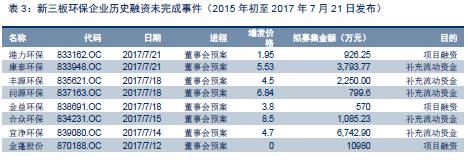 1.2 新三板一級(jí)市場環(huán)保行業(yè)定增總結(jié)(0717~0721)