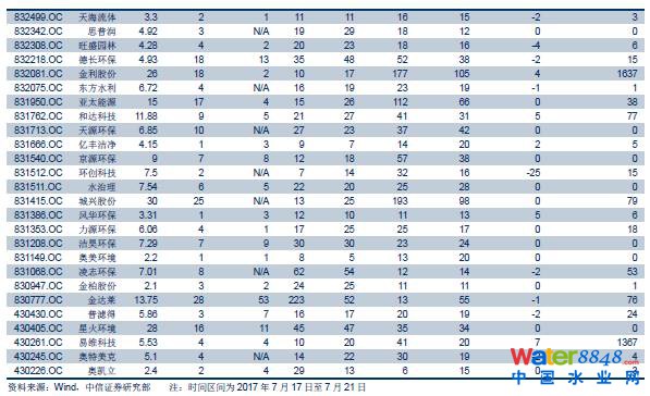 1.1新三板環(huán)保行業(yè)市場表現(xiàn)回顧(0717~0721)