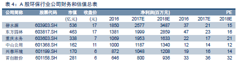 水生態(tài)治理:政府投資增長,發(fā)展機(jī)遇來臨。(1)人工依賴度低,水生態(tài)修復(fù)行業(yè)獲政策支持。濕地保護(hù)/水土保持/河道治理存在巨大市場。我們預(yù)計(jì)2020年水生態(tài)治理市場規(guī)?蛇_(dá)1000億元左右,4年CAGR18.9%。(2)行業(yè)集中度提高,明星企業(yè)值得關(guān)注。營收靠前的五家公司2016營收/利潤占新三板水生態(tài)治理企業(yè)營收/利潤總和的71.56%和50.48%。(3)一體化經(jīng)營成趨勢,河道黑臭水體治理為重點(diǎn)。(4)2016年新三板歸母凈利潤大于1500萬元且增速為正的標(biāo)的共6家,浦華環(huán)保為行業(yè)龍頭。