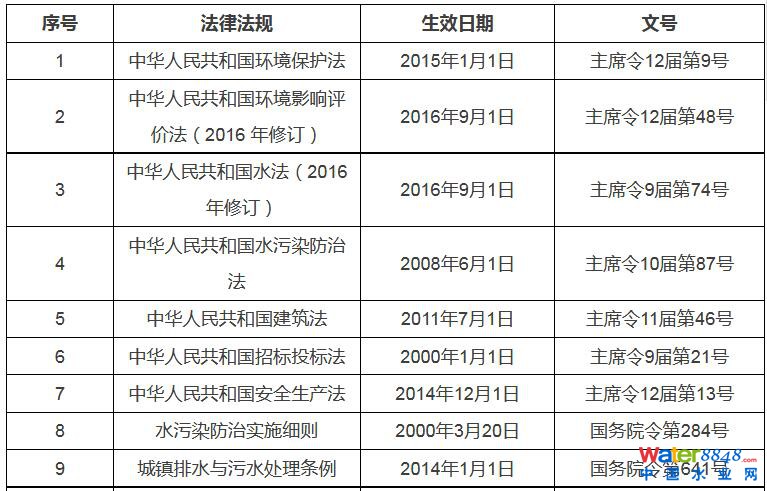 1989年12月,我國頒布《中華人民共和國環(huán)境保護(hù)法》(以下簡稱“環(huán)保法”),為環(huán)保產(chǎn)業(yè)提供了重要法律支持。自此以后,我國出臺(tái)了多部與環(huán)境保護(hù)直接相關(guān)的法律法規(guī),包括《中華人民共和國水法》、《中華人民共和國環(huán)境影響評(píng)價(jià)法》、《中華人民共和國水污染防治法》等等。