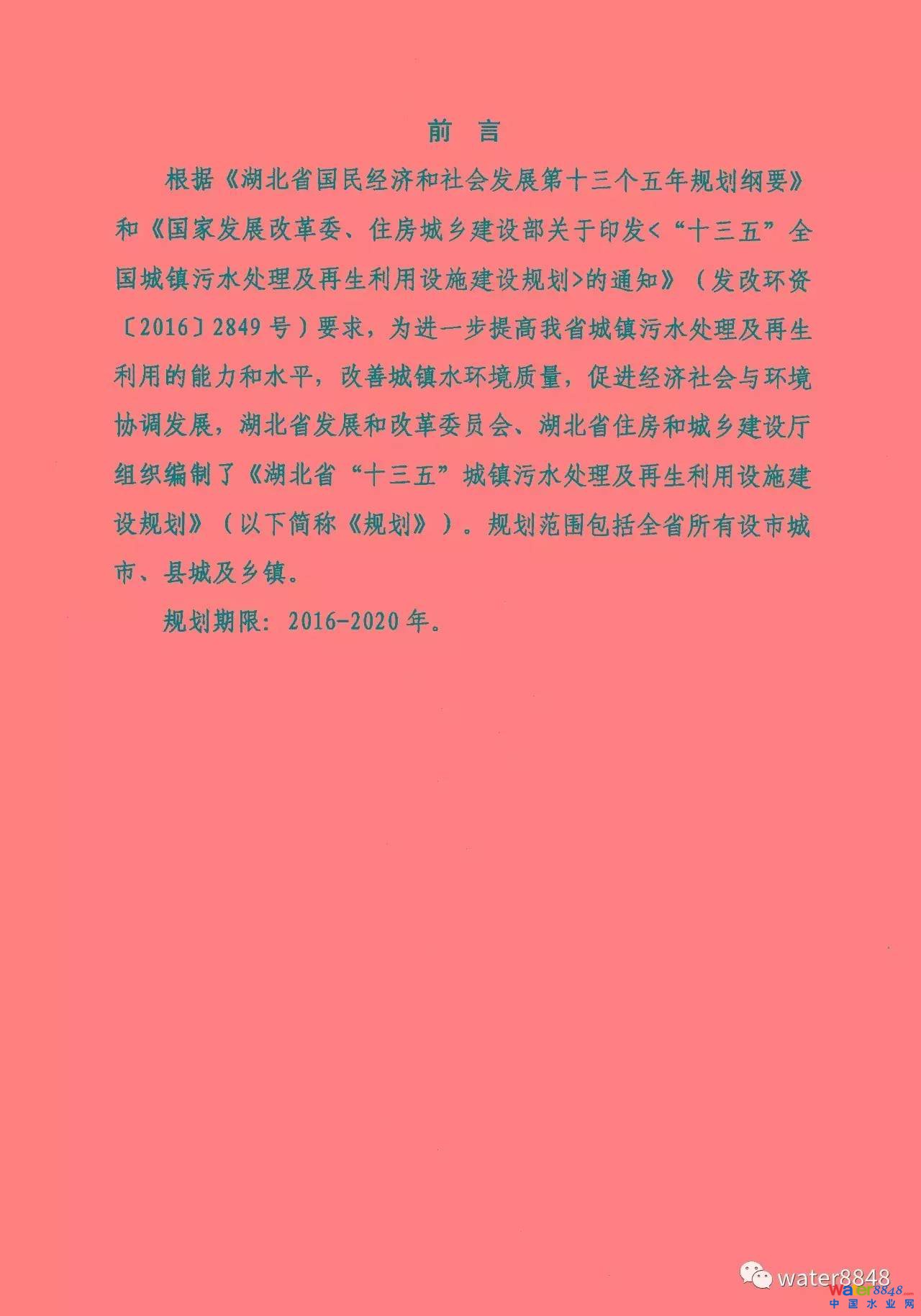 全文:湖北省“十三五”城鎮(zhèn)污水處理及再生利用設(shè)施建設(shè)規(guī)劃 (發(fā)改環(huán)資〔2016〕2849號)