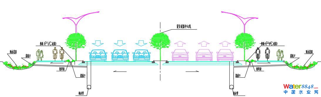 1.新建道路兩側綠地可采用生物滯留池(帶),凈化地表雨水徑流,滯蓄雨水,削減徑流峰值;現(xiàn)狀道路存在積水問題或污染較重的,對原有綠化帶改造,可采用生物滯留池形式,控制徑流污染。