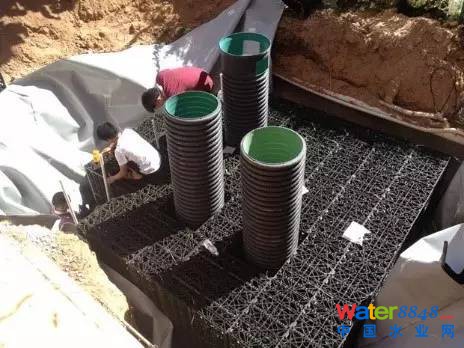 穿孔排水管能有效提高生物滯留池排水能力,面積在100m2以下的小型生物滯留池穿孔排水管間距最大為1.5m,面積在100m2以上的大中型生物滯留池穿孔排水管間距可取2.5m至3m內。此外,穿孔排水管最小水力坡度為0.5%,保證水能夠順利排走。因排水層高度限制,穿孔管直徑最大為100mm。管材可選擇PVC管或柔性穿孔管,在確定管材時需注意如下幾個方面:穿孔管上小孔應較小防止填料自由進入穿孔管;,若生物滯留池較淺或過濾層含水量過少,應盡量避免植物根系進入管道內汲水。