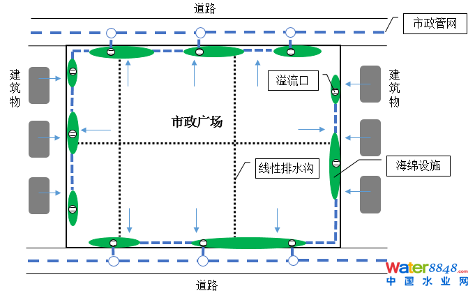 圖2 市政廣場(chǎng)雨水徑流系統(tǒng)