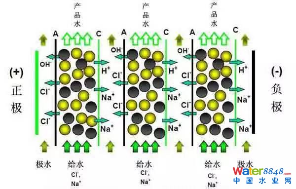 電去離子,又稱填充床電滲析(EDI/CDI), 是在電滲析器的隔膜之間裝填陰陽(yáng)離子交換樹脂、將電滲析與離子交換有機(jī)的結(jié)合起來(lái)的一種水處理技術(shù)。它被認(rèn)為是水處理領(lǐng)域具有革命性創(chuàng)新的技術(shù)之一。
