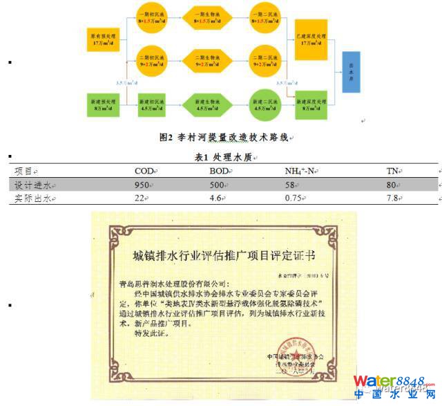 同時對改造和新建工程進行了能耗追蹤,一期和二期噸水電耗從改造前的;降至3;三期新建工程噸水電耗為3,出水標準提高而能耗降低,主要源于采用微動力混合池型,取消推流器,降低推流器電耗;同時,懸浮填料填充率增加,大幅提高氧利用率,降低曝氣能耗。