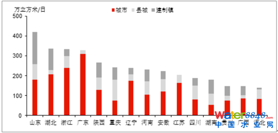 我國(guó)“十三五”城鎮(zhèn)污水處理規(guī)劃提標(biāo)改造規(guī)模前列省市