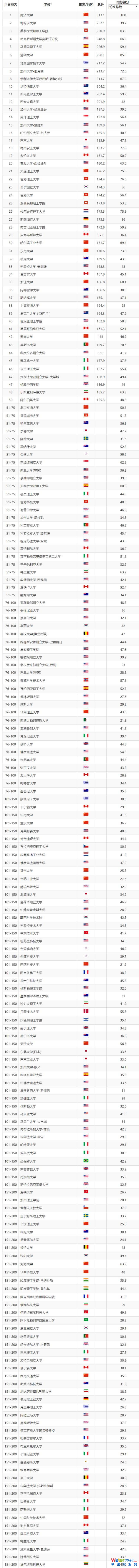 排名前50的還有:大連理工大學(xué)、香港理工大學(xué)、香港大學(xué)、哈爾濱工業(yè)大學(xué)、東南大學(xué)、浙江大學(xué)、上海交通大學(xué)、湖南大學(xué)。