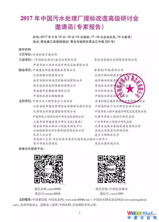 46位專家報(bào)告|2017年中國(guó)污水處理廠提標(biāo)改造高級(jí)研討會(huì)邀請(qǐng)函