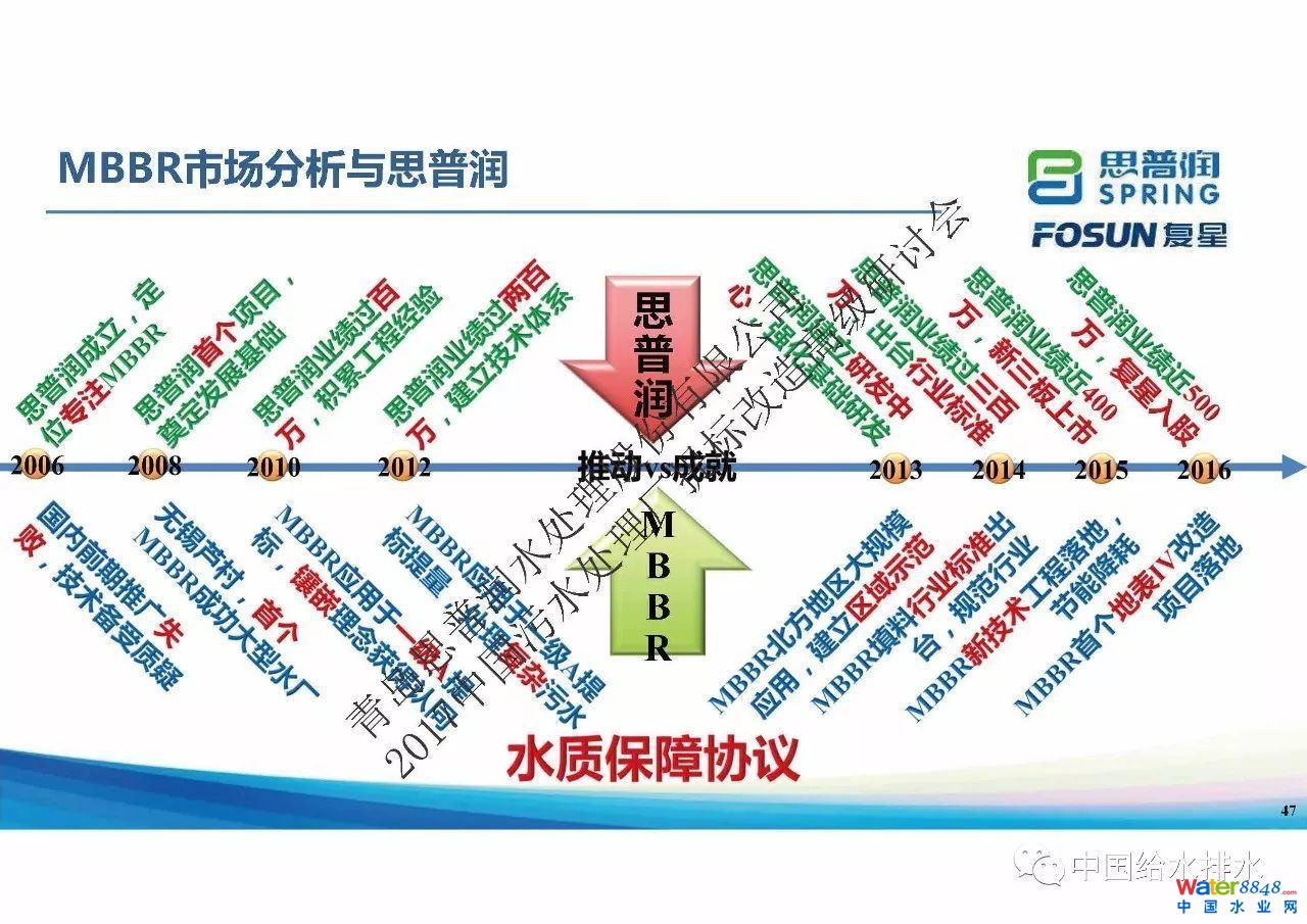 最后介紹一下我們公司,我們是2006年成立,注冊(cè)資金6900萬,新三板高新技術(shù)企業(yè)。專注MBBR的建設(shè)。工程業(yè)績現(xiàn)在是近500萬噸每天,思普潤從成立開始跟MBBR結(jié)下不解之緣,專注11年。我們很早時(shí)就采用水質(zhì)保障協(xié)議方式保證業(yè)主利益,就是說不達(dá)標(biāo)可以不給我們錢,甚至我們體量達(dá)到三百萬噸時(shí),公司都因?yàn)槲覀兊膮f(xié)議保證而在墊資建設(shè),這也是源于我們對(duì)自己工藝的信心。我們擁有完整的自主知識(shí)產(chǎn)權(quán),發(fā)明專利,獲取國家省市的眾多獎(jiǎng)項(xiàng)。我們李村河獲得水協(xié)張杰院士的審評(píng),參與國家865的專項(xiàng)課題技術(shù)發(fā)展。今天就介紹到這里,謝謝大家。
