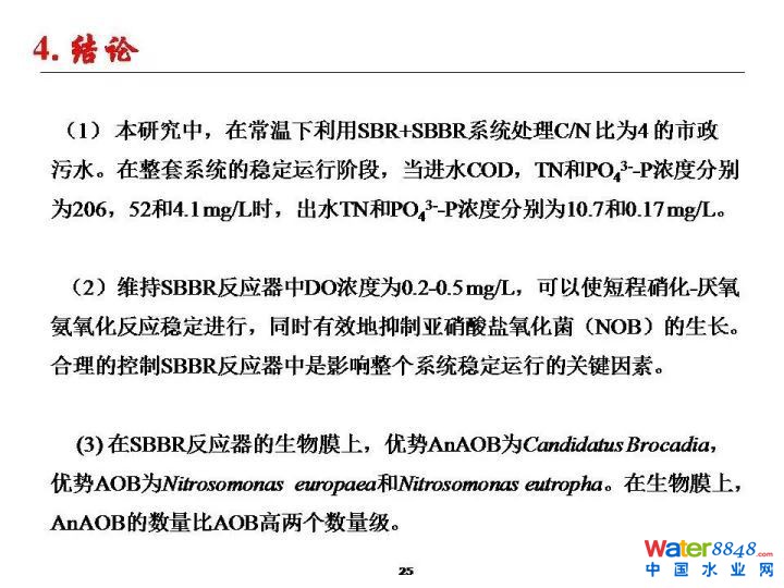 近年來,隨著氮、磷有機物排放量的急劇增加,有效降低廢水中氮、磷濃度已成為現(xiàn)代廢水處理領(lǐng)域的研究開發(fā)和應(yīng)用熱點。這是一份25頁的PPT,對城市污水厭氧氨氧化脫氮進(jìn)行了詳細(xì)的研究,我們來看一下彭永臻院士團(tuán)隊的研究成果(最下方附有相應(yīng)的演講視頻)。