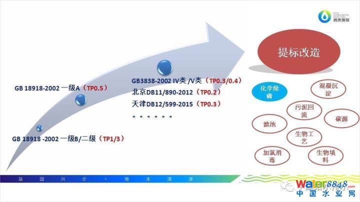 現(xiàn)在很多的還沒有提標(biāo)改造的污水廠,大多執(zhí)行的標(biāo)準(zhǔn)是二級(jí)標(biāo)準(zhǔn)或者一級(jí)B標(biāo)準(zhǔn),需要提到一級(jí)A或者更高的標(biāo)準(zhǔn)。很多敏感區(qū)域的污水處理廠,執(zhí)行的排放標(biāo)準(zhǔn)已達(dá)到地表水四類或者五類的標(biāo)準(zhǔn)。國(guó)家還有很多一些大型的城市,像北京和天津,已經(jīng)執(zhí)行了地方標(biāo)準(zhǔn)。這些標(biāo)準(zhǔn)都是高于國(guó)家的一級(jí)A標(biāo)準(zhǔn)的。也就是說我們提標(biāo)改造的目的,并不是僅僅是一級(jí)A。