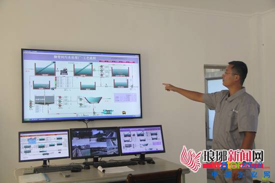 徐恒超為記者介紹柳青河污水處理廠工藝流程
