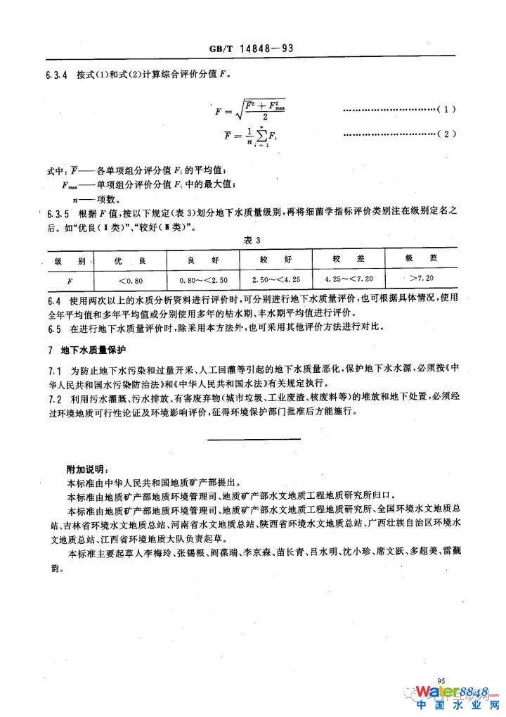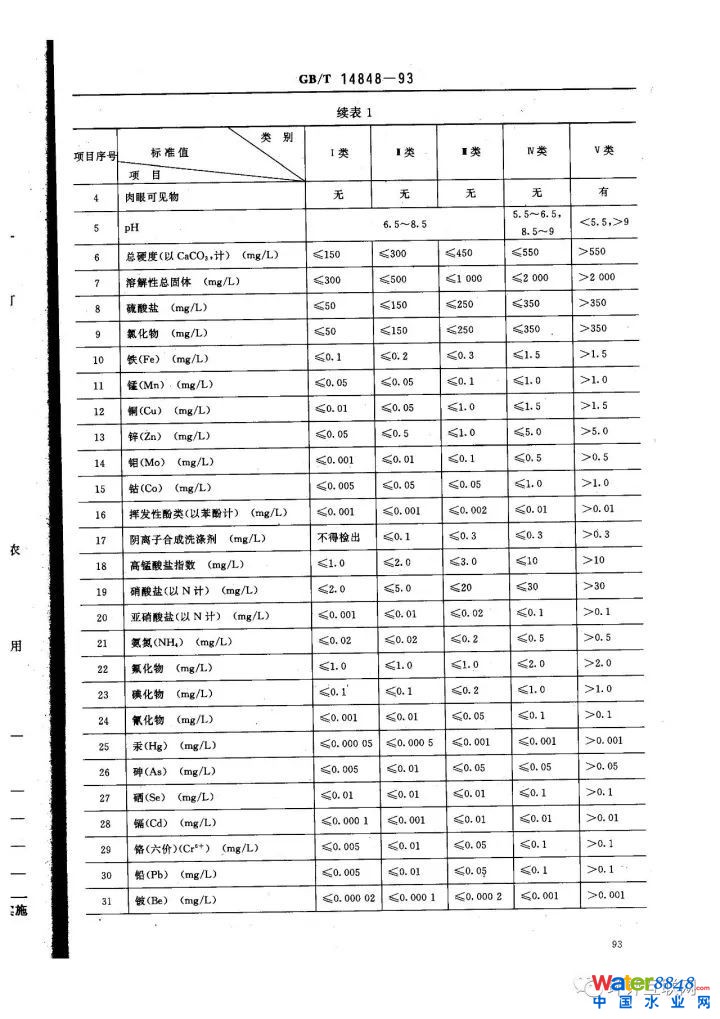 地下水質(zhì)量標(biāo)準(zhǔn)(GB/T 14848-93) 1994-10-01實(shí)施。