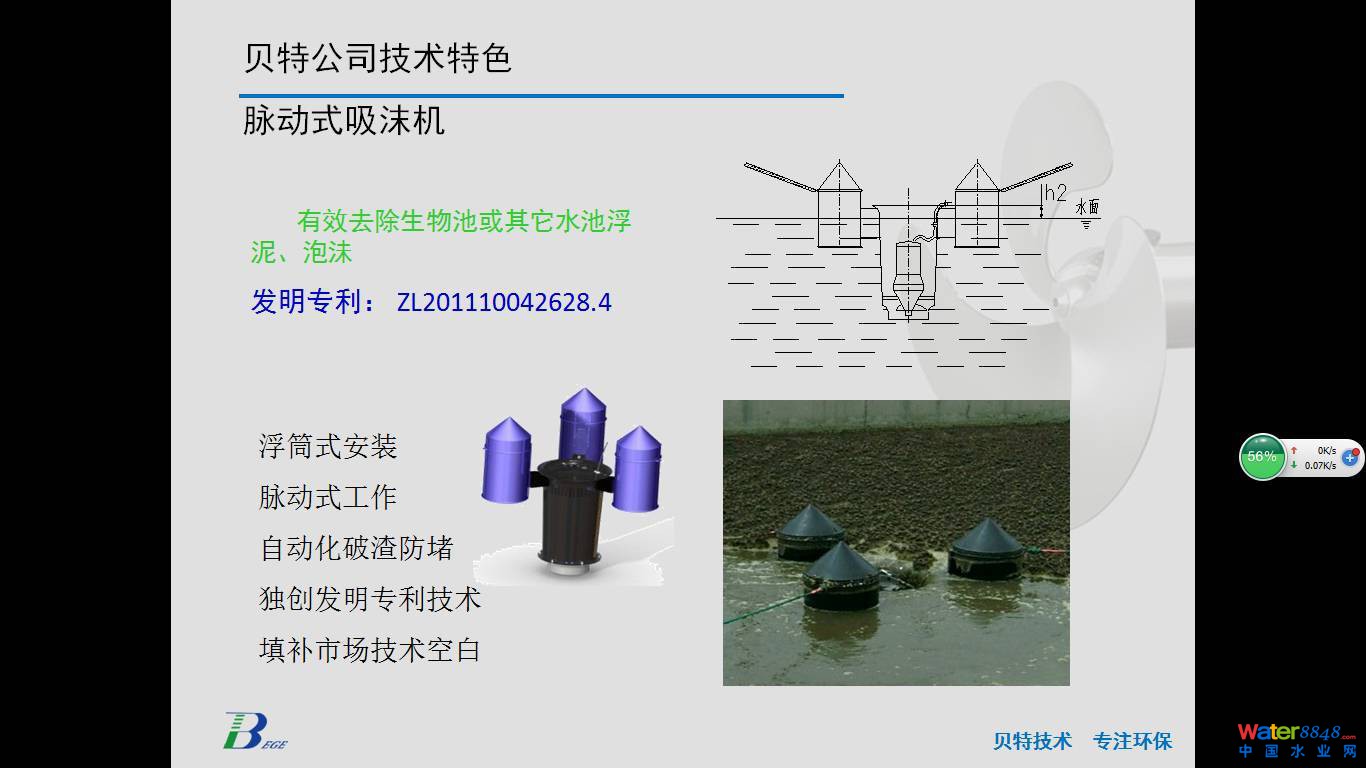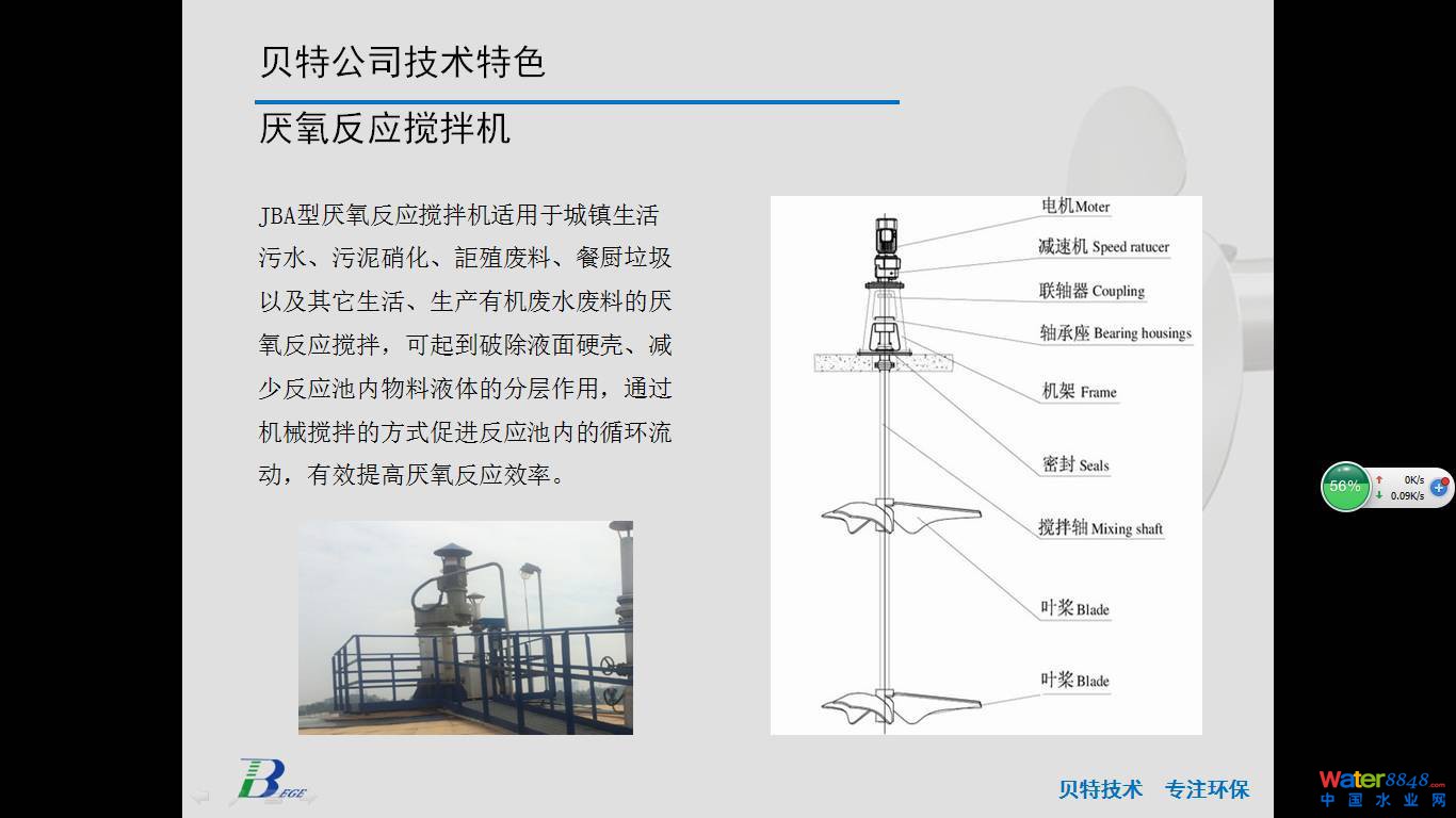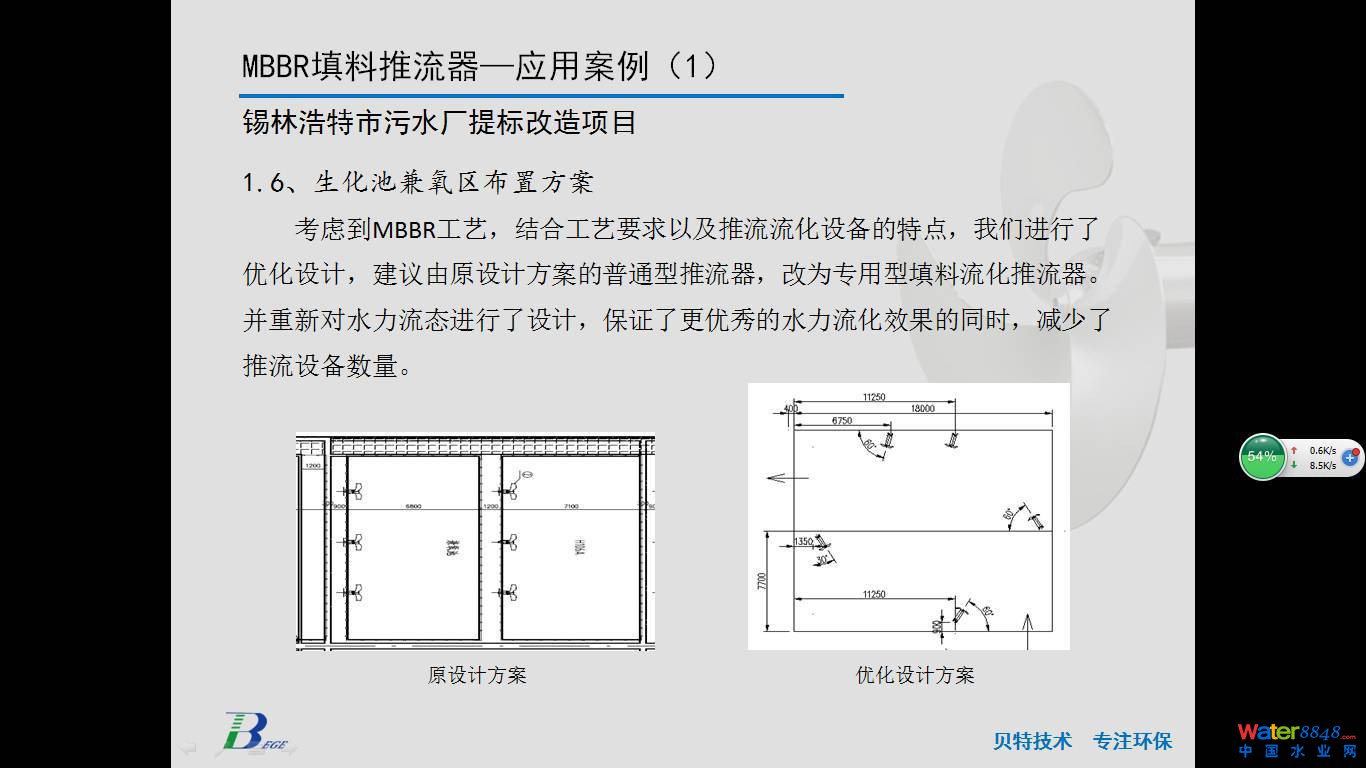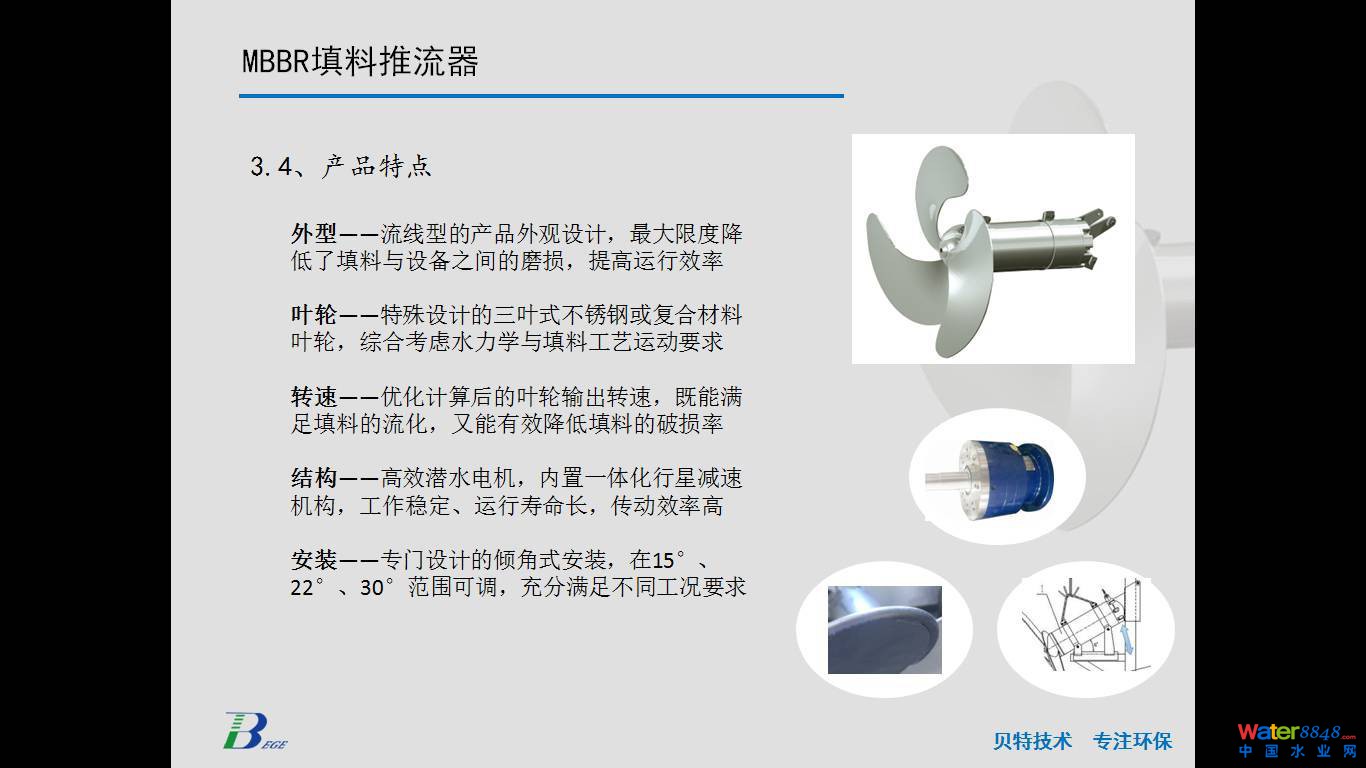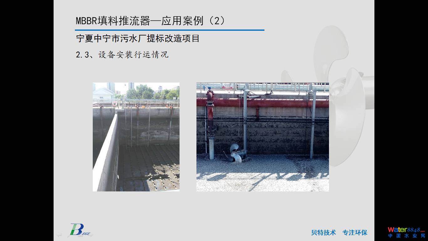首先感謝會務(wù)組這么緊湊的安排。前面幾位專業(yè)廠家對MBBR工藝和懸浮填料做了非常全面深刻的介紹,F(xiàn)在由我來代表南京貝特給大家?guī)硪豢钸m用于MBBR工藝的設(shè)備,就是前面幾位提到的MBBR比較重要的關(guān)鍵的一個環(huán)節(jié),即懸浮填料的流化推流。