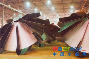 由于卡魯塞爾氧化溝的表曝機(jī)只能安裝在渠道的轉(zhuǎn)角處,因此表曝機(jī)必須同時(shí)提供三種功能:1-曝氣 (向曝氣池供氧),2-攪拌 (保證原水、混合液與回流污泥的良好混合),3-泵提升作用 (借助分隔墻維持0.3m/s的渠道流速),所以氧化溝渠道的幾何尺寸與曝氣葉輪諸多參數(shù)之間的配合對(duì)氧化溝的運(yùn)行是至關(guān)重要的。為此,DHV公司持有自家品牌的專用曝氣葉輪,如較早以前的Oxyrator® 和后來(lái)的Oxyrator® Star。與此同時(shí),DHV公司還測(cè)試和認(rèn)證過(guò)其它幾種葉輪在卡魯塞爾氧化溝中使用,過(guò)去較早的品牌如Landustrie公司的Landy® F,Hubert公司的Hubert™,以及Simon-Hartley公司的SimCar™ 等等;2000年以后較新的品牌如Landustrie公司的Landy® 7,Spaans公司的O2Max®;2005年以后還有荷蘭一家專業(yè)葉輪設(shè)計(jì)公司所設(shè)計(jì)的 Astrumaer®。以下是這些葉輪的圖片,資料分別來(lái)自相應(yīng)廠商的樣本、網(wǎng)頁(yè)或現(xiàn)場(chǎng)照片。