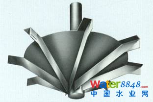 美國(guó)第一座雙葉輪卡魯塞爾氧化溝于1991年設(shè)計(jì)建成,雙葉輪結(jié)構(gòu)是在Hubert™ 葉輪的基礎(chǔ)上增加了低位攪拌推進(jìn)葉輪,如下圖所示(原EIMCO公司樣本資料):