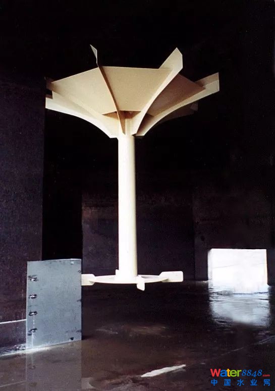低位葉輪是為攪拌和推進(jìn)所設(shè)計(jì)的,但其驅(qū)動(dòng)功率來(lái)自曝氣機(jī)的電機(jī),約占曝氣機(jī)電機(jī)功率的10%左右。因此若以電機(jī)總功率折算雙葉輪的曝氣動(dòng)力效率,低位葉輪會(huì)“拖后腿”。但作為上半部分的曝氣葉輪,其實(shí)際動(dòng)力效率還是很好的,這一點(diǎn)在比較雙葉輪表曝機(jī)與常規(guī)表曝機(jī)的動(dòng)力效率時(shí)須加以注意。