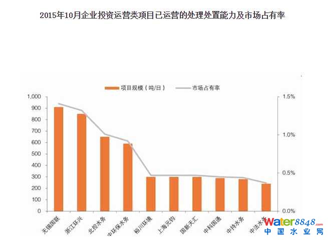 我國(guó)污泥處理行業(yè)市場(chǎng)集中度較低,專(zhuān)業(yè)仍事污泥處理處置的企業(yè)較少,且規(guī)模較小,未出現(xiàn)龍失企業(yè)。根據(jù)E20環(huán)境平臺(tái)的統(tǒng)計(jì)結(jié)果,截至2015年10月,各企業(yè)已運(yùn)營(yíng)的BOT、BOO、DBO、投資運(yùn)營(yíng)類(lèi)項(xiàng)目處理規(guī)模,在調(diào)查企業(yè)中,無(wú)錫國(guó)聯(lián)、浙江環(huán)興和北控水務(wù)分別以1.41%、1.32%和1.01%的市場(chǎng)占有率位居榜單前3名。