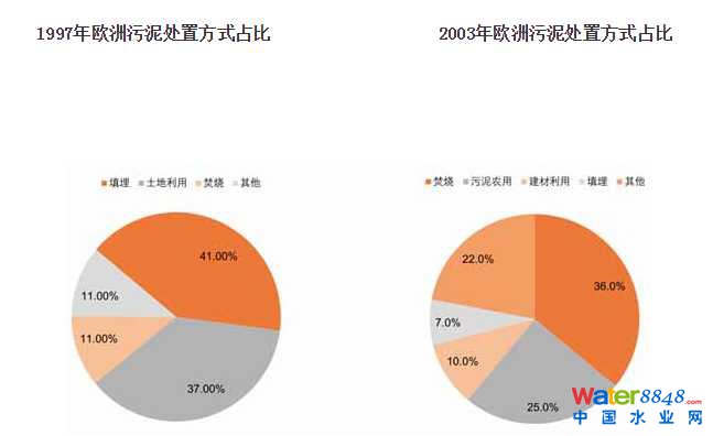 據(jù)歐盟數(shù)據(jù)統(tǒng)計(jì),在政策導(dǎo)向和人們對(duì)污泥填埋及農(nóng)用的擔(dān)憂,污泥處置方式有了很大的變化,仍1997年到2003年,填埋比例由41%下降到7%,污泥農(nóng)用比例由37%下降到25%,而焚燒則由11%上升到36%,仍2003年的數(shù)據(jù)中發(fā)現(xiàn),有10%的污泥用于建造業(yè),污泥資源化利用初見(jiàn)端倪。近年來(lái)隨著污泥中有害物質(zhì)逐步減少,部分歐洲國(guó)家再一次對(duì)土地利用給予重視,例如德國(guó)、英國(guó)和法國(guó)土地利用的比例分別已達(dá)到40%、60%和60%。