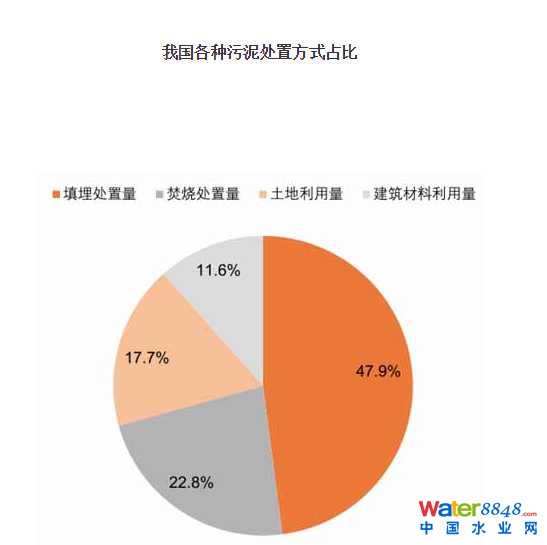 截至2014年底,全國(guó)污水處理廠產(chǎn)生的污泥無(wú)害化處置率僅為56%,主要處置方式為衛(wèi)生填埋、焚燒、制肥、制造建材。余下的污泥中,約三分之一采用“臨時(shí)手段”處置,剩余污泥去向不明。