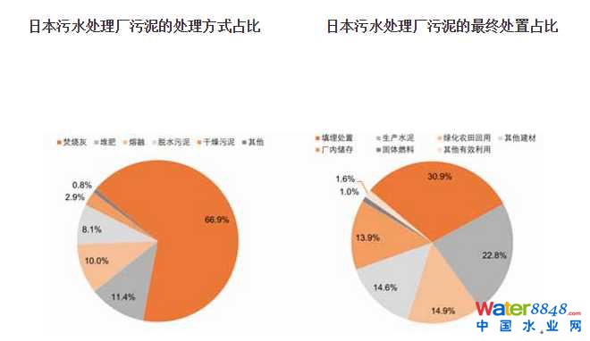 據(jù)統(tǒng)計(jì)2011年,日本在處理污泥中,焚燒處理占比66.9%,焚燒灰用于填埋、建材利用、土地利用,在污泥最終處置中,建材利用(包括生產(chǎn)水泥和其他建材)的比例最大,占比37.4%,其次是填埋處置(大部分為污泥焚燒灰),占比30.9%,由于日本土地稀缺,污泥填埋侵占土地仍而成本較高,污泥焚燒及資源利用的比例將逐步提高。