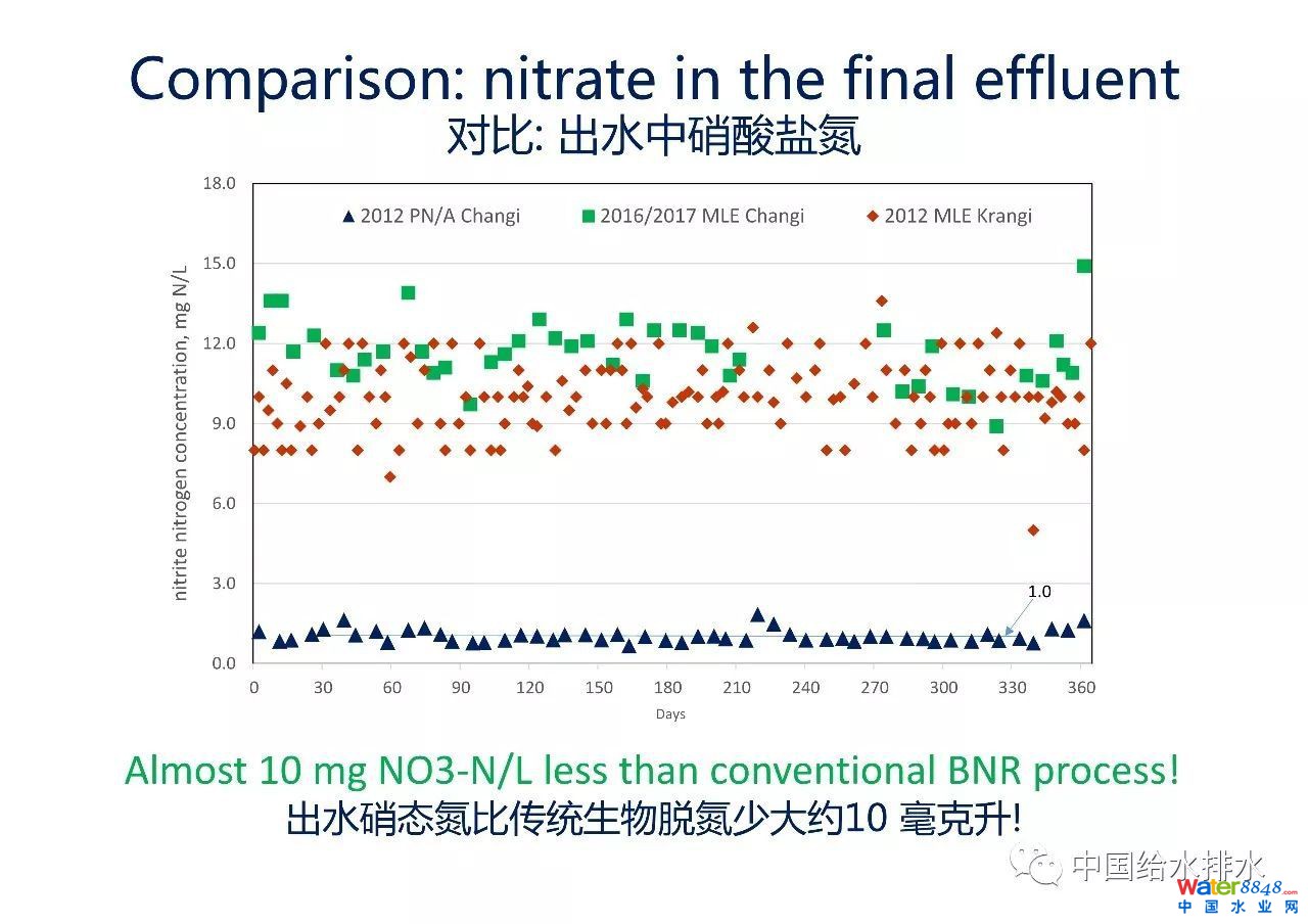 在2017年11月7—10日由國(guó)際水協(xié)(IWA)和重慶大學(xué)主辦的題為“可持續(xù)的廢水處理:研究、規(guī)劃、設(shè)計(jì)和運(yùn)行”(IWA-NRR-LWWTP 2017)國(guó)際會(huì)議上,來(lái)自荷蘭代爾夫特技術(shù)大學(xué)(TU Delft) 的Mark van Loosdrecht教授做了題為“新概念的廢水處理的創(chuàng)新與實(shí)踐(Innovations and Practical Experience of New Concepts in Wastewater Treatment)”的主題演講。他舉了2個(gè)已經(jīng)工業(yè)化應(yīng)用的實(shí)例。一個(gè)是新加坡樟宜污水廠的主流厭氧氨氧化,另一個(gè)是Nereda好氧顆粒污泥技術(shù)的應(yīng)用。新加坡公用事業(yè)局(PUB)曹業(yè)始博士在此次會(huì)議上,對(duì)樟宜污水廠2011—2016年主流短程硝化和厭氧氨氧化的運(yùn)行狀況及微生物研究情況做了總結(jié)報(bào)告。