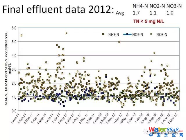 美國(guó)原來很多老廠 用兩點(diǎn)進(jìn)料工藝,再增加進(jìn)料點(diǎn)有顧慮,出水氨氮高達(dá)到5-6 mg/L。國(guó)內(nèi)考慮這個(gè)工藝考慮氨氮可能不能穩(wěn)定達(dá)到我們的要求。