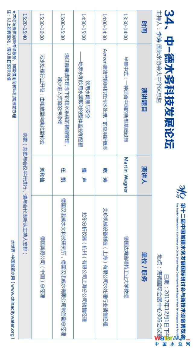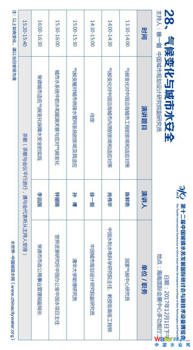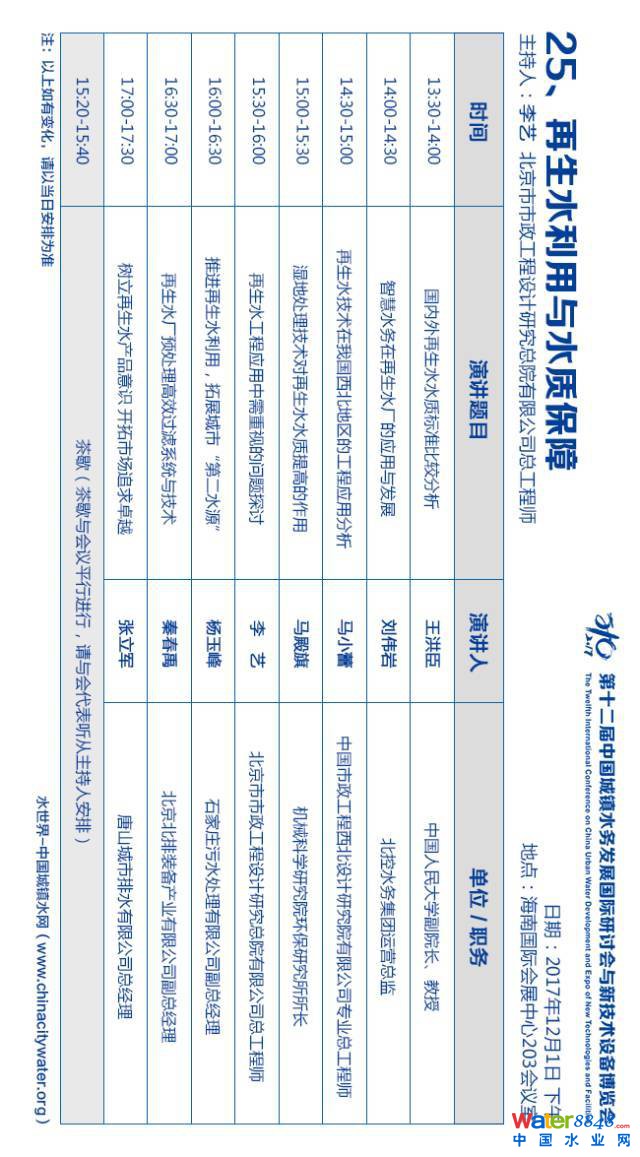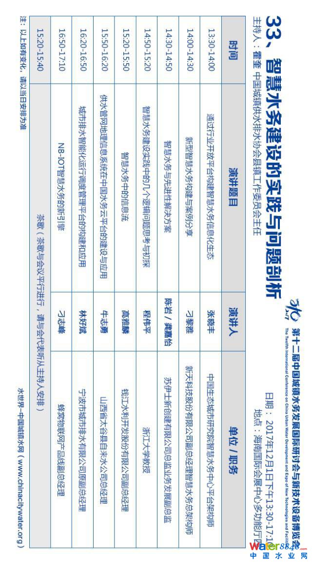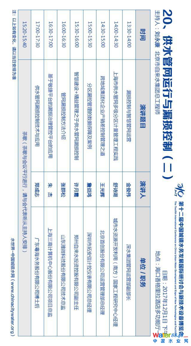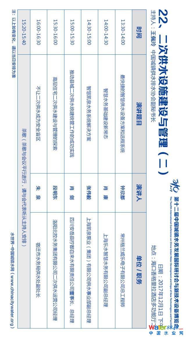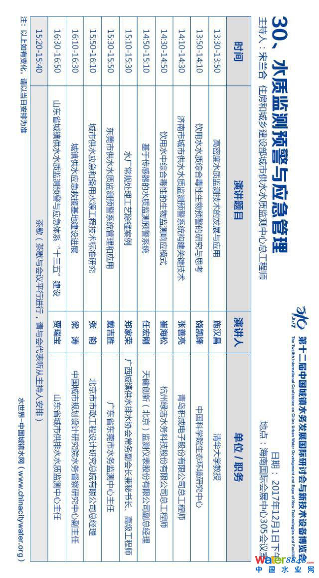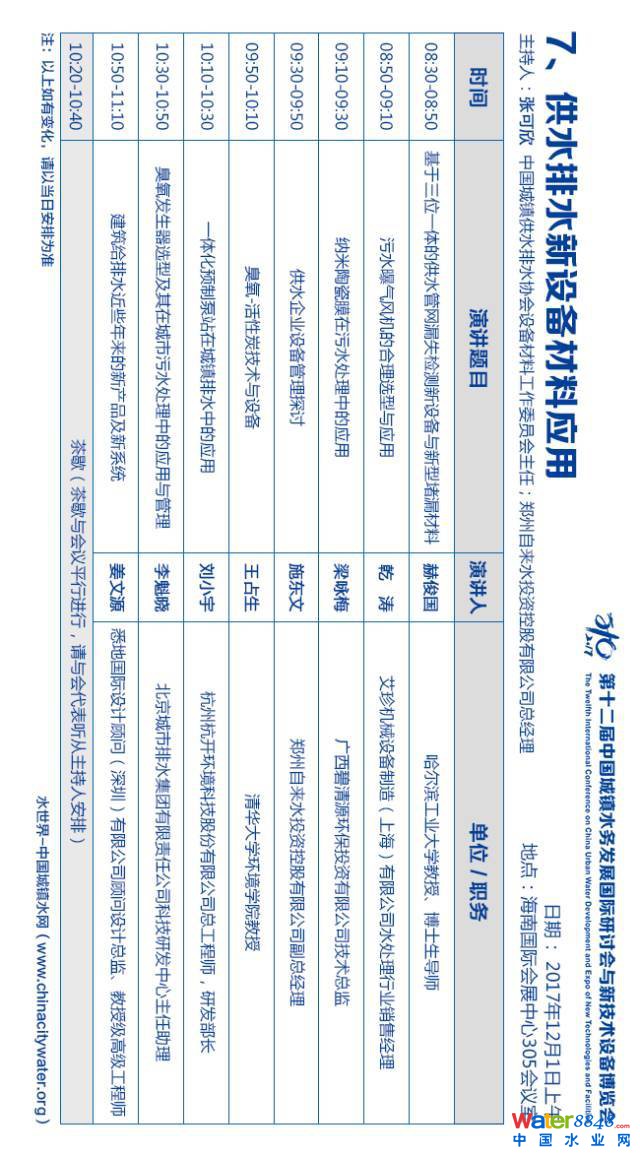 最新詳細議程-第十二屆中國城鎮(zhèn)水務(wù)發(fā)展國際研討會與新技術(shù)設(shè)備博覽會
