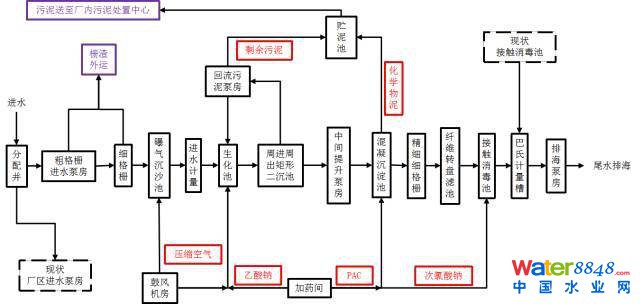 紅沙污水處理二廠為半地下式花園式污水處理廠,其辦公、中控等利用紅沙污水處理一廠現(xiàn)有用房和設(shè)施設(shè)備。二廠污水處理設(shè)計規(guī)模為9.5萬m³/d;污水處理工藝采用“多模式A2O+高效沉淀池+纖維轉(zhuǎn)盤濾池+接觸消毒”,出水與一廠出水匯合后排海,出水水質(zhì)為一級A標準。