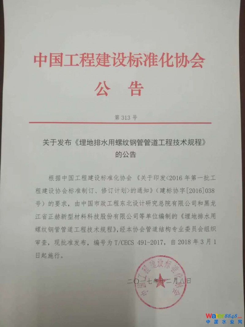 關(guān)于發(fā)布《埋地排水用螺紋鋼管管道工程技術(shù)規(guī)程》 的公告 單位:中國工程建設(shè)標(biāo)準(zhǔn)化協(xié)會