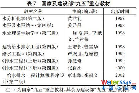 “九五”期間,給排水專業(yè)有3部教材被評為國家“九五”重點教材、5部教材被評為建設(shè)部“九五”重點教材(建設(shè)部建教[1996]591號文件),見表7。