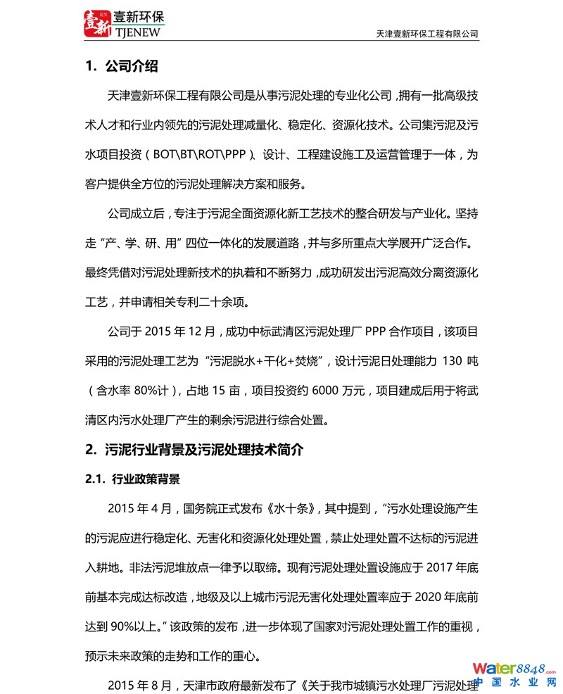 天津壹新環(huán)保工程有限公司污泥全面資源化處置技術(shù)