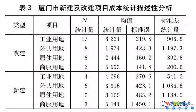 通過梳理涉及工業(yè)、公共、居住、商服等4種用地類型的廈門市海綿城市建設(shè)的52個(gè)典型項(xiàng)目,核算計(jì)算項(xiàng)目工程造價(jià)及徑流控制總?cè)莘eV,進(jìn)而確定52個(gè)典型項(xiàng)目的單位徑流控制容積的成本。
