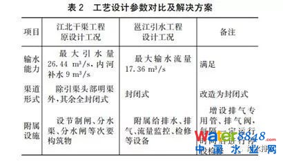 輸水能力和輸水安全上,干渠除頭部220 m采用明渠外,其余斷面采用全封閉式,可滿足供水工程對(duì)水質(zhì)安全的要求。干渠供水重力流下最大流量為26.44 m3/s,可滿足近期受水水廠17.36 m3/s的需水量,并有一定余量仍可供河道補(bǔ)水用。設(shè)計(jì)參數(shù)對(duì)比詳見表2。