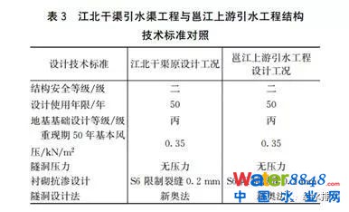 南寧市邕江上游引水工程主要利用其中引水暗渠及引水隧洞段。原設(shè)計(jì)技術(shù)標(biāo)準(zhǔn)與邕江上游引水工程技術(shù)標(biāo)準(zhǔn)對(duì)比情況如表3所示。