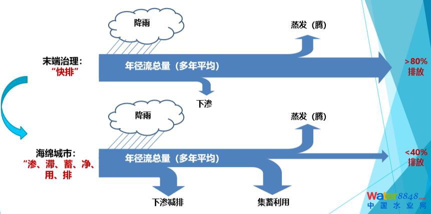 海綿效應(yīng):水量(雨水徑流量控制)、水質(zhì)(雨水徑流污染控制)