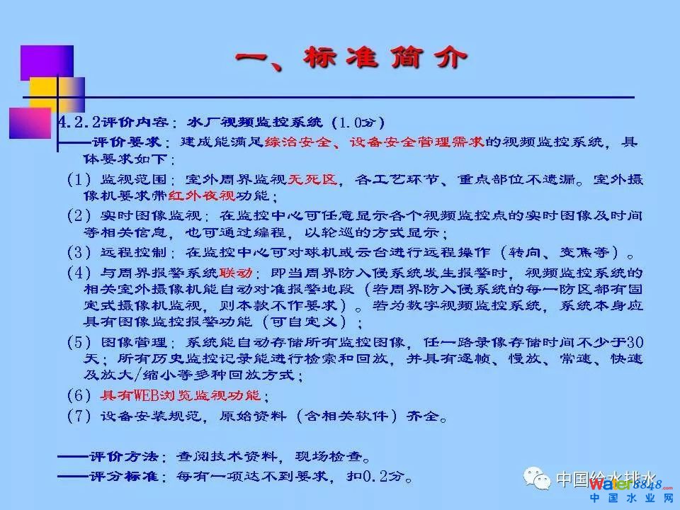 《浙江省城市供水現(xiàn)代化水廠評價標(biāo)準(zhǔn)》(2013版)涵蓋七大部分內(nèi)容:水質(zhì)、凈水工藝、電氣機(jī)械設(shè)備、自動化和信息化、科學(xué)管理、安全生產(chǎn)和水廠環(huán)境,共分為30多個評價類別、80多個評價項目、240多個評價點,評價總分為100分,其中,自動化和信息化占到20分。紹興市制水有限公司徐永燦副總經(jīng)理在報告中詳細(xì)介紹了“自動化和信息化”部分標(biāo)準(zhǔn)的具體評價內(nèi)容(評價要求、方法及評分標(biāo)準(zhǔn)),同時介紹了紹興制水有限公司建設(shè)現(xiàn)代化水廠的探索與實踐。