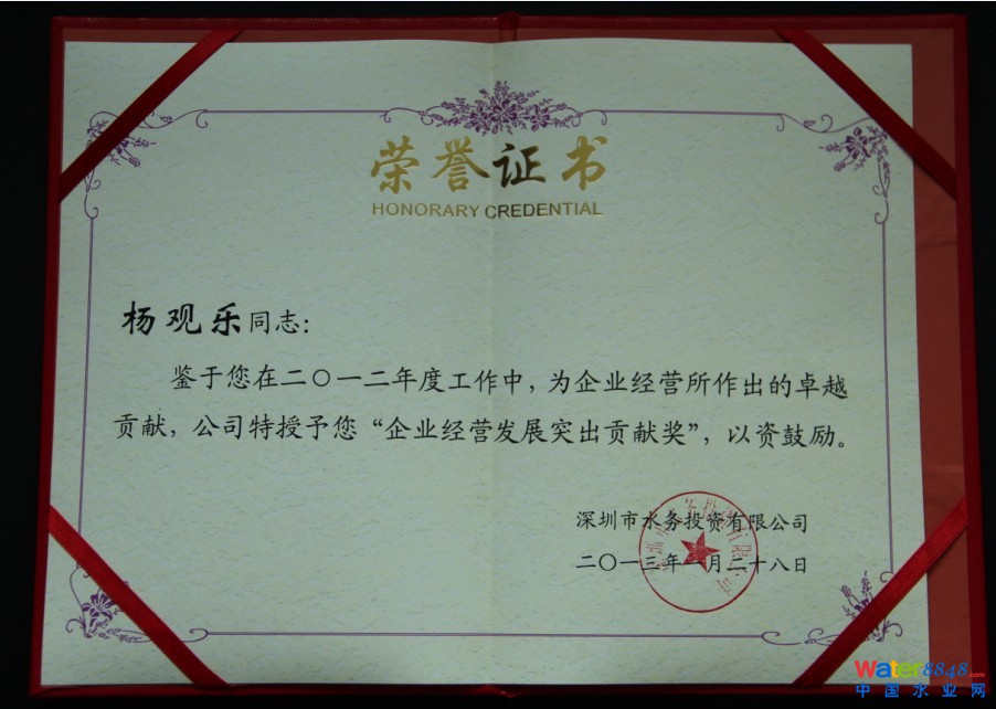楊觀(guān)樂(lè),男,1969年11月出生,廣東深圳人,中共黨員,畢業(yè)于哈爾濱工業(yè)大學(xué),給排水高級(jí)工程師,是全國(guó)最大的水務(wù)企業(yè)深圳水務(wù)集團(tuán)員工,由于句容市政府與深圳水務(wù)集團(tuán)進(jìn)行了污水項(xiàng)目的BOT合作,2011年被外派至江蘇工作,目前擔(dān)任句容市深水水務(wù)、句容市深水黃梅、常州市深水城北、常州市深水江邊四家公司董事長(zhǎng)職務(wù),并兼任黨支部書(shū)記。2012年3月份擔(dān)任句容市政協(xié)委員一年以來(lái),積極收集社情民意,用外來(lái)投資者的視野向政協(xié)共提交了9個(gè)提案,內(nèi)容涉及句容市的生態(tài)、民生、文化、旅游等。由于工作積極主動(dòng),近兩年時(shí)間,帶領(lǐng)句容公司獲得了集團(tuán)先進(jìn)單位、個(gè)人也獲得集團(tuán)先進(jìn)生產(chǎn)工作者、2011年度突出貢獻(xiàn)獎(jiǎng)、2012年度企業(yè)經(jīng)營(yíng)發(fā)展突出貢獻(xiàn)獎(jiǎng),在句容,也獲得了鎮(zhèn)江市環(huán)保局減排先進(jìn)個(gè)人、句容市住建局優(yōu)秀黨員稱(chēng)號(hào)等。