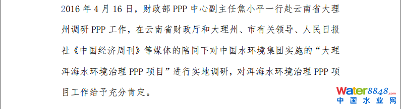 核心提示:大理洱海環(huán)湖治理PPP項(xiàng)目