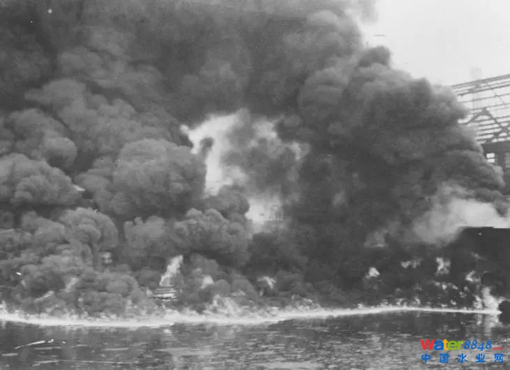 河面上積聚的大量油性廢物瞬間被火花點(diǎn)燃。