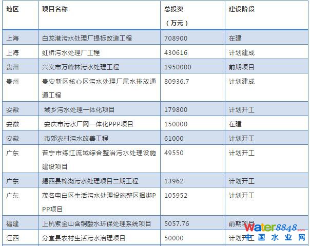 (一)13省投1203.18億元建設(shè)155個重點污水處理項目