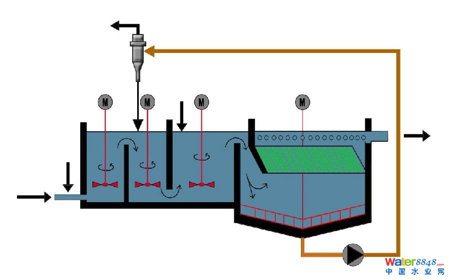 將負載物加載到形成的礬花上,極快地加速后續(xù)的泥水分離,負載物通過旋流分離回收重復(fù)利用。適應(yīng)于占地特別有限的場合,上升流速40-60m/h;除磷;適應(yīng)現(xiàn)有水廠的提質(zhì)擴容