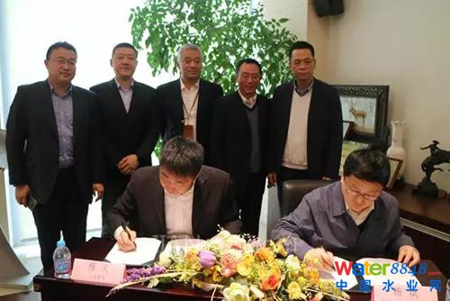 首創(chuàng)股份總經理楊斌與上;鄢炭偨浝沓塘x代表雙方在合資公司成立協(xié)議上簽字,并致辭。