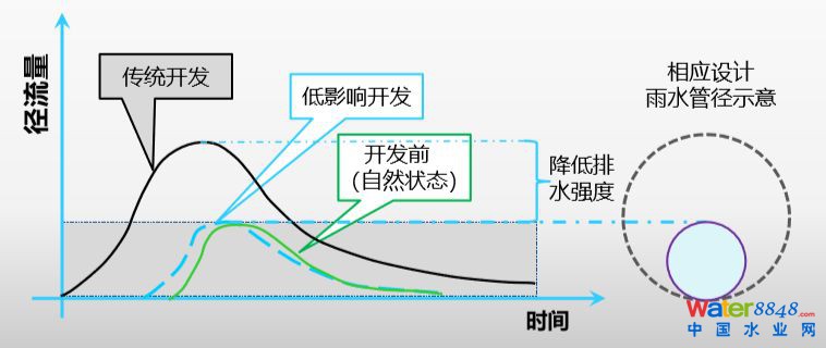 徑流過程控制是指通過消峰、錯峰,延緩和降低徑流峰值,從而降低排水強(qiáng)度,減輕城市排水設(shè)施的負(fù)荷。未來我們希望逐步賦予它治理水污的功能,從而把整個設(shè)施作為雨水的調(diào)蓄空間利用起來。