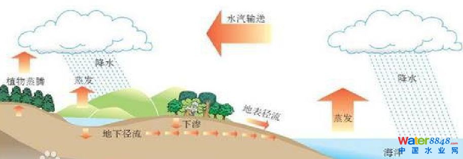 大氣的水汽循環(huán)運(yùn)動基本上包括四個過程:蒸騰、水汽運(yùn)動、降雨和回歸大海。其中蒸騰和回歸大海這兩個過程的水量都只有10%~30%。研究小尺度城市范圍內(nèi)的水循環(huán),主要是研究其降雨與徑流之間的關(guān)系。