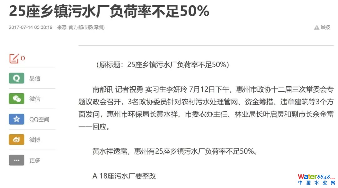 一個是部分污水處理廠達不到設(shè)計處理規(guī)模。比方說一個設(shè)計處理規(guī)模10萬噸/天的污水處理廠,由于配套的污水管網(wǎng)不完善,實際上每天只能收到5-6萬噸的污水。(當(dāng)然,也有部分城市的狀況是每天實際處理水量大于污水處理廠的設(shè)計處理能力,在超負荷運行的,這個我們今天暫不詳述。)