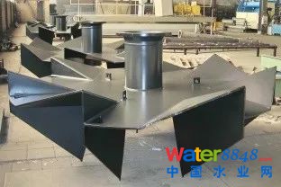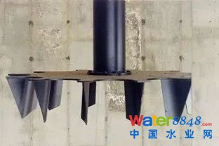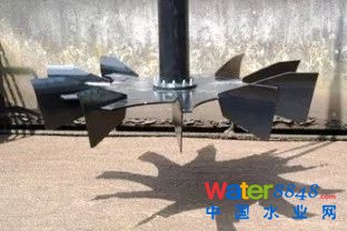 美國第一座雙葉輪卡魯塞爾氧化溝于1991年設(shè)計(jì)建成,雙葉輪結(jié)構(gòu)是在Hubert™ 葉輪的基礎(chǔ)上增加了低位攪拌推進(jìn)葉輪,如下圖所示(原EIMCO公司樣本資料):