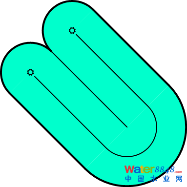 卡魯塞爾氧化溝的平面布置是一項(xiàng)很有意思的設(shè)計(jì)工作,因?yàn)槠矫娌贾猛瑫r(shí)涉及到了工藝設(shè)計(jì)和水力設(shè)計(jì),而且平面布置隨池中安裝的表曝機(jī)數(shù)量而變化。卡魯塞爾氧化溝常見的池型布置如下: